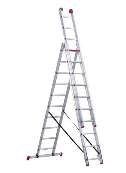 Ladder aluminium 3 x 10 treden, max. hoogte 6,25 mtr.