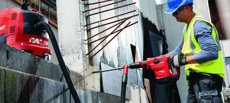 Krachtige maar lichte combihamer voor heavy-duty boren en beitelen in beton. Uitermate geschikt voor het boren van ankergaten en doorvoeringen in beton en metselwerk (aanbevolen diameterbereik 12-40 mm), middelzwaar sloopwerk, het boren in metselwerk en beton en het ontkernen in metselwerk.