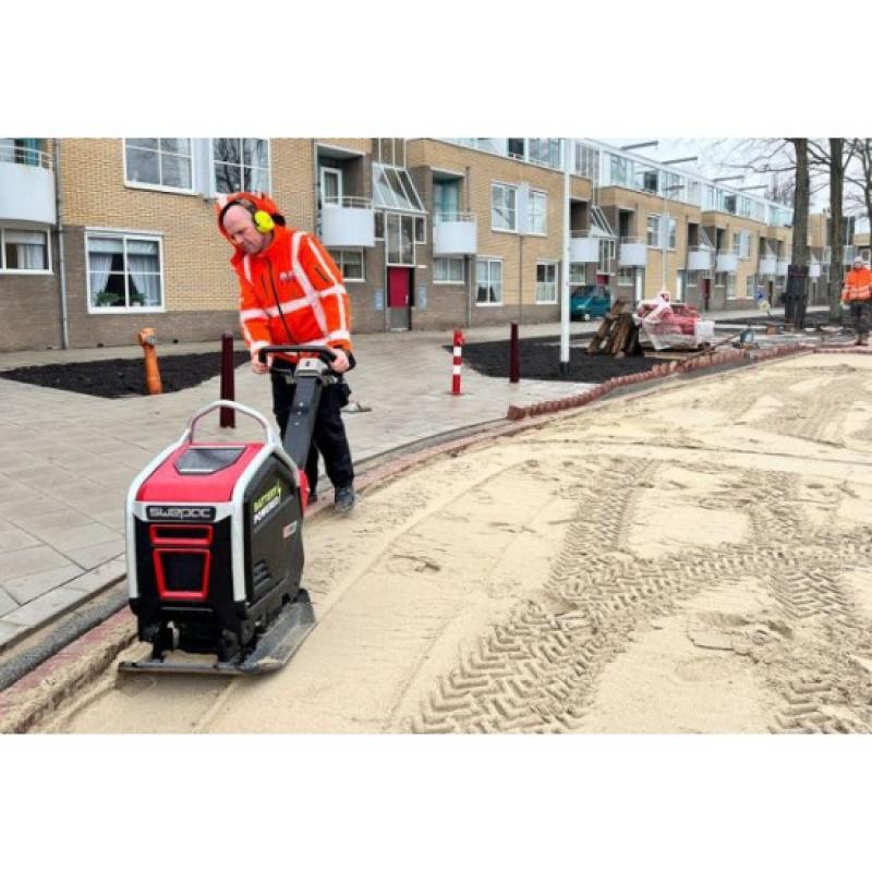 Geschikt voor emissievrije verdichting van zand, grind, steenslag en straatstenen.