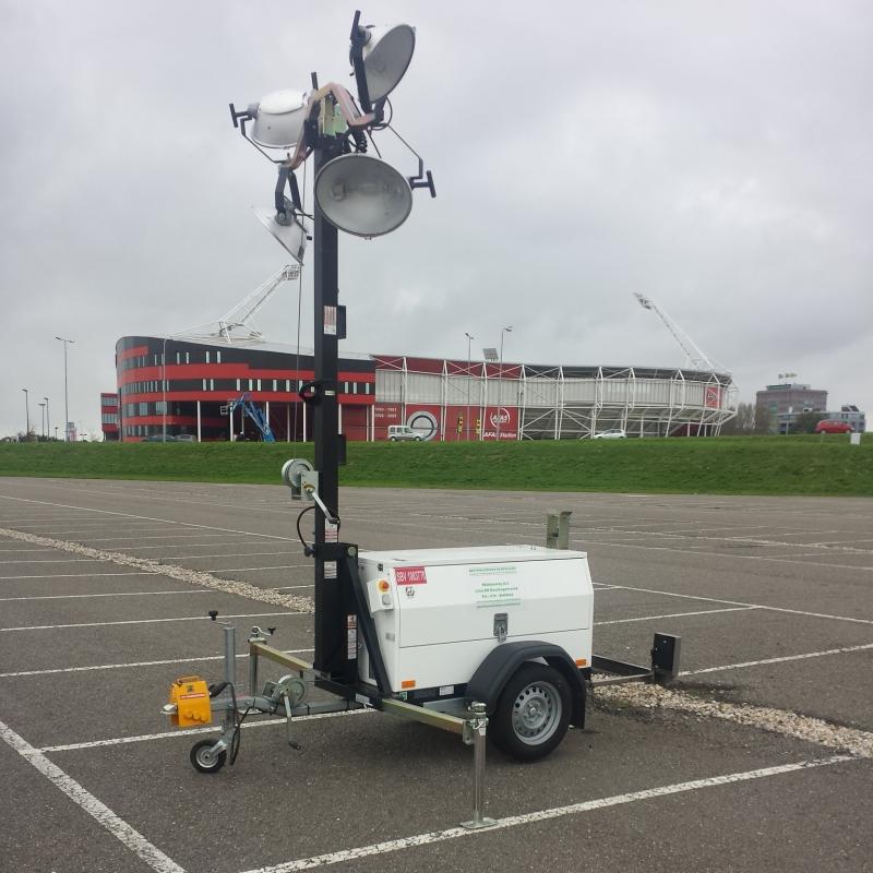 Hiermee kan een een oppervlakte worden verlicht van maar liefst 5000 m2. In slechts 10 seconden is de hydraulische mast geheven tot een hoogte van 9.0 meter. De generator die de lampen aandrijft met een vermogen van 6 kVA kan door middel van de 2 stuks 230 volt aansluitingen ook als aggregaat worden gebruikt.